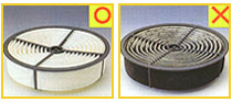 エア・クリーナ・エレメントは、エンジンに吸入される空気をろ過するものです。RV車や4WD車のように、ホコリや砂地を走行することの多い車は、当然汚れもひどく、交換時期が早くなります。