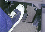 ブレーキ・ペダルをいっぱいに踏み込んだとき、床板とのすき間(踏み残りしろ)や踏みごたえが適当であるかを点検します。